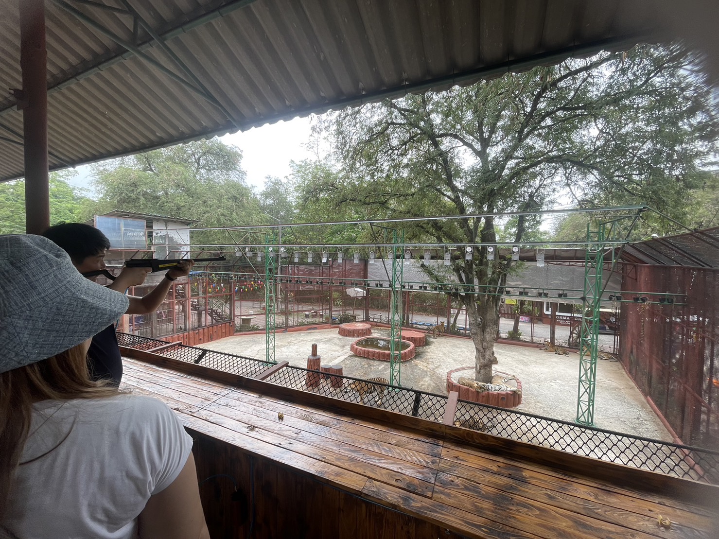 - Новый парк тигров в Сираче, стреляем из пневматических ружей по мишеням над вольером с тиграми, при попадании небольшой кусок мяса падает к ним.