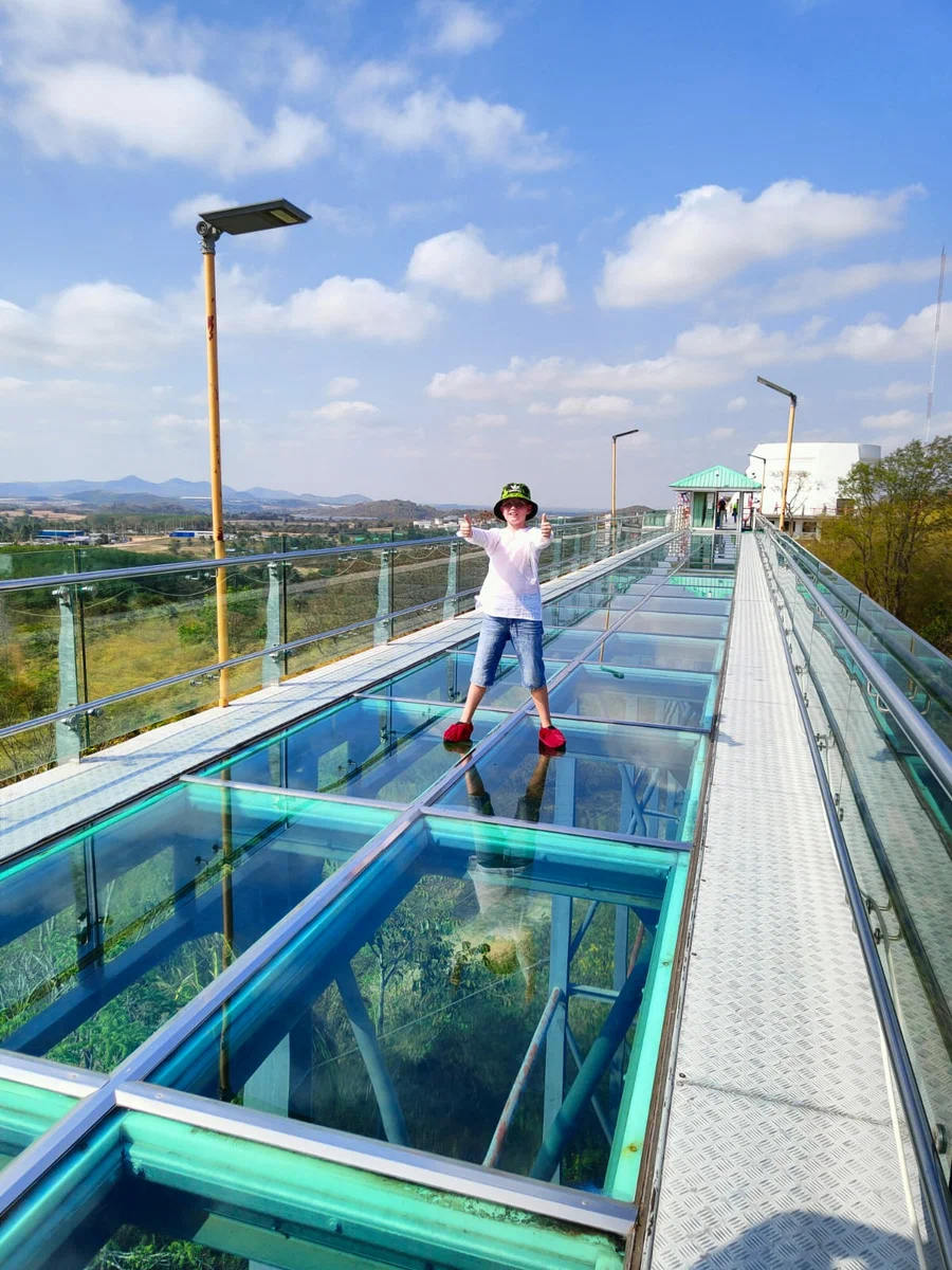 -Выезд 7:30, первая остановка храм расположенный на горе Wat Khao Tabaek Skywalk, поднимаемся на стеклянный мост, делаем красивые фотографии